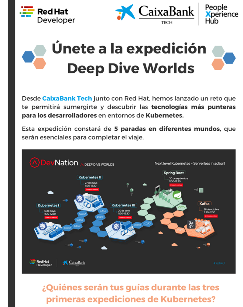 Desde People Xperience HUB, la comunidad de talento del Grupo CaixaBank, nos han hecho llegar la última iniciativa que se ha lanzado de la mano de Red Hat: “Deep Dive Worlds”.