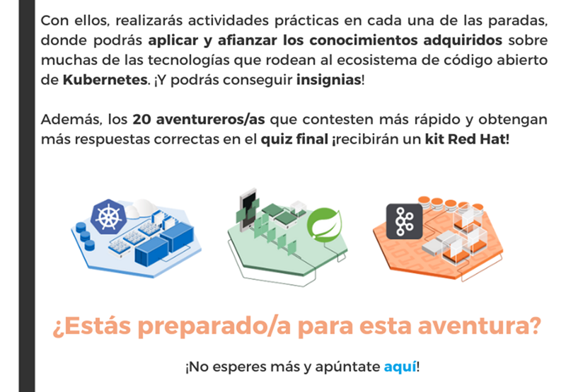 Esta iniciativa consiste en unas “Speaker series” formativas y gratuitas de Cloud (Kubernetes, Kafka y Spring Boot) impartidas por expertos de CaixaBank Tech y de Red Hat.