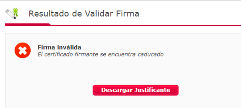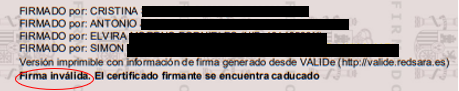 En el caso de que alguna de las firmas sea errónea, aparecerá algo así a la hora de validar el convenio: